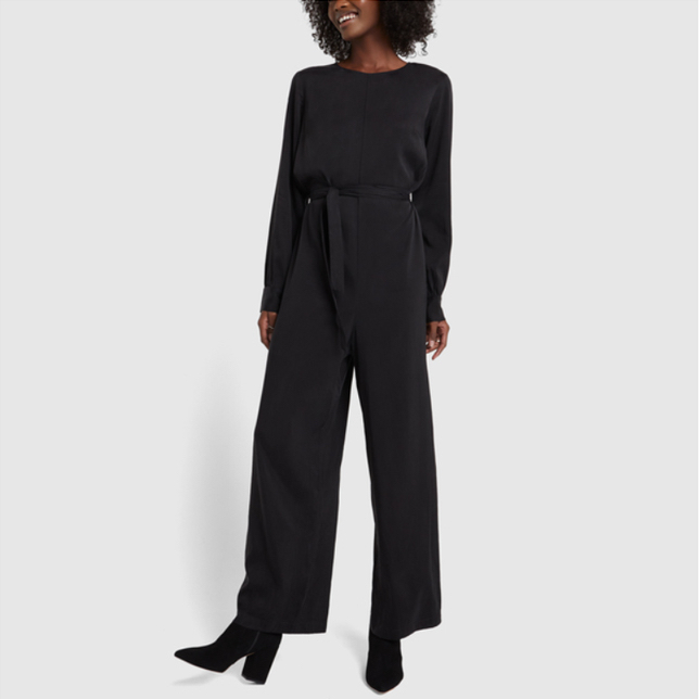 If a full suit isn’t appropriate for your job interview, a jumper can be a sophisticated-cool alternative. A dark color is more formal and says that you’re serious about the job. Make sure your jumper has a defined waist- you don’t want to wear a sack to your interview! I love this effortlessly cool goop X Universal Standard Brushed-Back Jumpsuit. I pair mine with a Comme des Garcons Classic Pouch and a pair of The Boss Boots from Everlane.